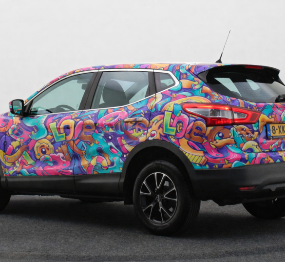 Njoy the Ride is geen standaard sponsorauto en geen schreeuwerige reclame-uiting. De auto wordt uitgevoerd met een hoogwaardige 360° wrap waarin design, verhaal en zichtbaarheid samenkomen.
